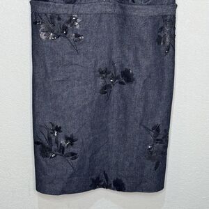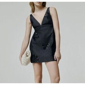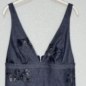 Zara Dress Womens Large Denim Sleeveless Deep V Neck Sequin Floral Mini Party