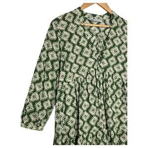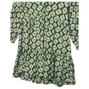 Zara Dress Women's Mini Cadie Geometric Print Boho Tiered Pleated Tie Green
