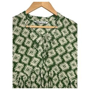 Zara Dress Womens M Mini Cadie Geometric Print Boho Tiered Pleated Tie Green