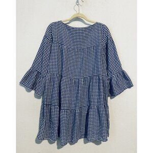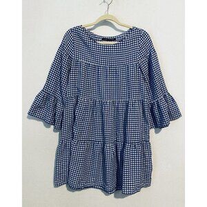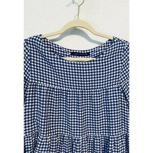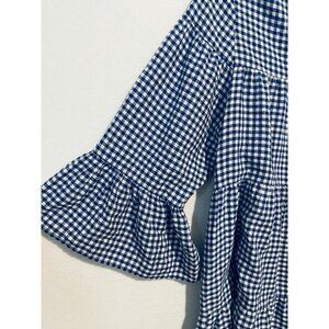 Zara Dress Womens Medium Blue Gingham Tiered Bell Sleeve Cottagecore Feminine
