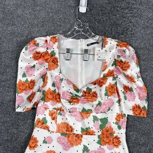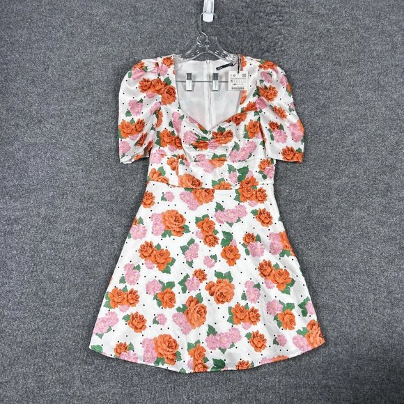 Zara Dress Womens Small White Floral Puff Sleeve Fit Flare Spring NEW NWT