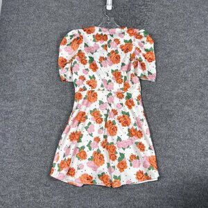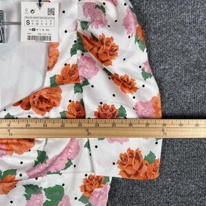 Zara Dress Womens Small White Floral Puff Sleeve Ruched Waist Fit Flare Spring