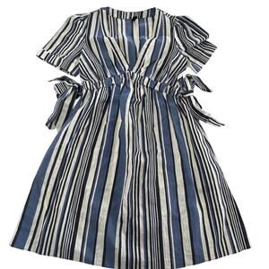 Zara Dress Womens XS Blue White Striped Short Sleeve Tie Waist Summer Casual