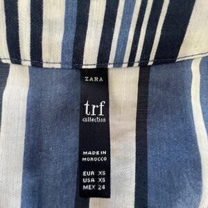Zara trf Collection Dress Womens XS Blue White Striped Short Sleeve Tie Waist Summer