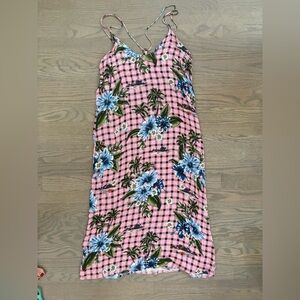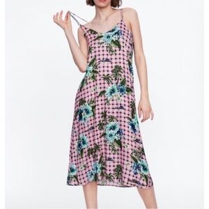 Zara Dress Womens XS Pink Blue Plaid Floral Print Strappy Midi