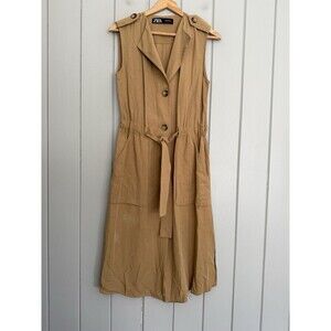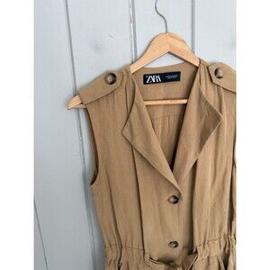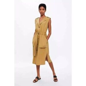 Zara Dress XS Butterscotch Khaki Vest Buttoned Waistcoat 1971026704 Lyocell