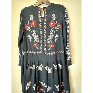 Zara Dress Sz XS Navy Floral Embroidered Wool.