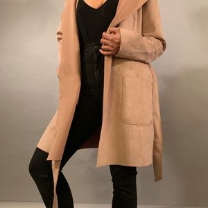 Zara Dusty Pink Blush Suede Open Coat w/ Hoodie and pockets. New item but no tag.