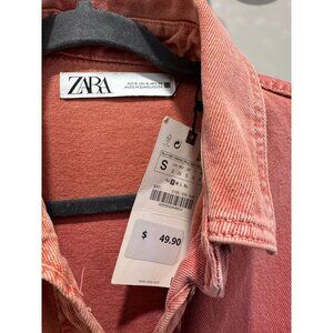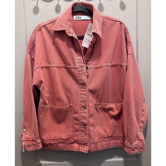 Zara Dusty Pink Washed Denim Oversized Jacket Women’s Size S NWT
