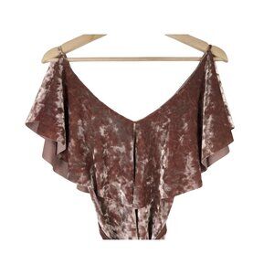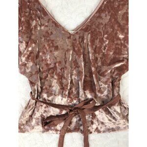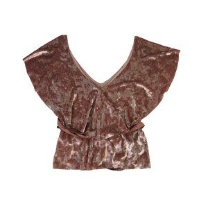 Zara Dusty Rose Velvet Ruffle Neck Top Size Small