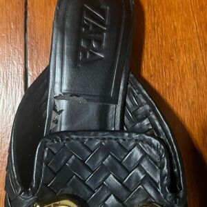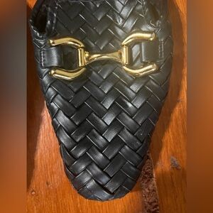 Zara EU 41 Women’s black woven leather gold horsebit mules slides