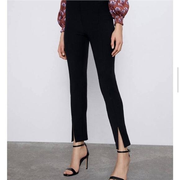 Zara EUC Black Pants Trousers Front Slits Size M Bloggers Favorite High Waist