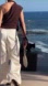 Pants with a high waist with front pleats. Front pockets and back false welt pocket. Wide leg. Front zip, inner button, and metal hook closure.
