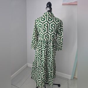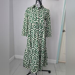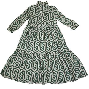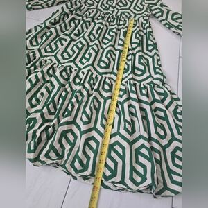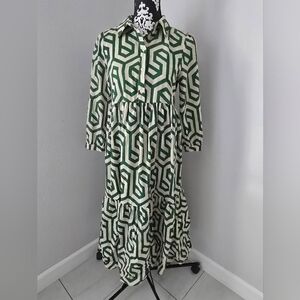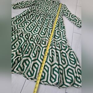 Zara Ecru White Green Geo Geometric Print Karen Tiered Midi Size S