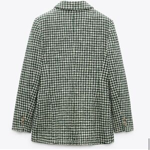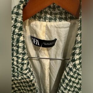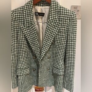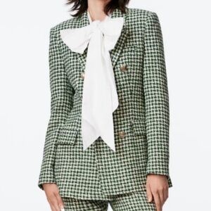 Zara Ecru/Green Houndstooth Lapel Collar Double Breasted Blazer Kate Middleton S