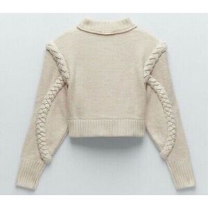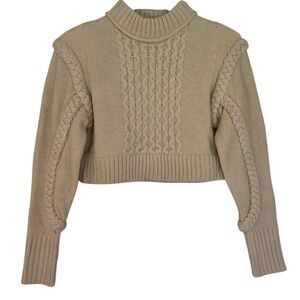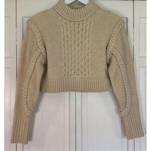 Description: nylon wool blend mock neck shoulder pad crop sweater