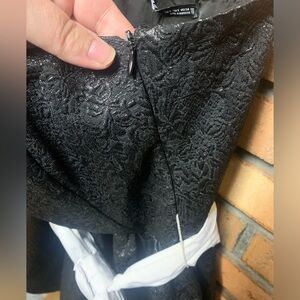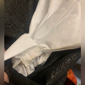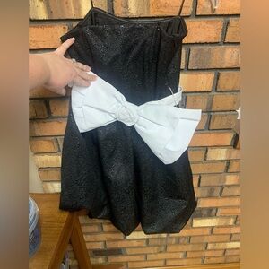 Chic black dress featuring a large white bow. Perfect for formal occasions. Slight discoloration on back of bow, NOT ON FRONT*** Size small NWT