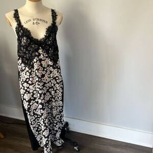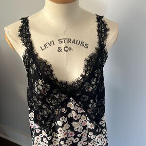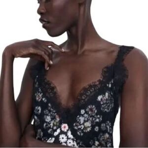 Zara Elegant Black Lace Slip Dress with Daisy Print
