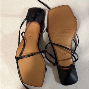 Step out in style with Zara's elegant black strappy sandals. Perfect for any occasion, these shoes offer both comfort and sophistication.