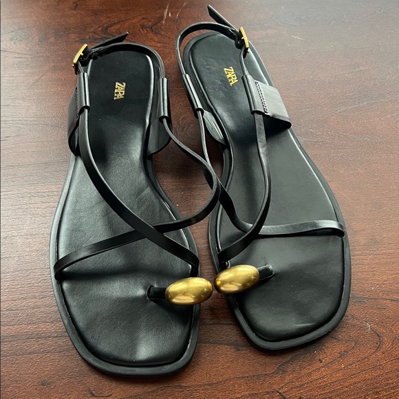 Zara Elegant Black Sandals with Gold toe ring