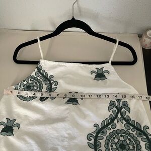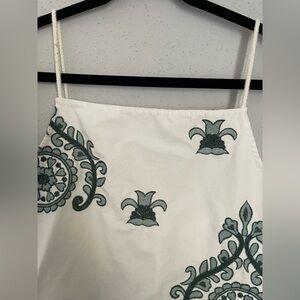 Zara Elegant White and Green Embroidered Women's Dress Size M