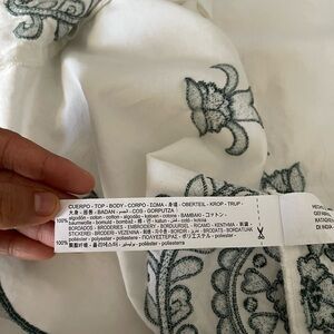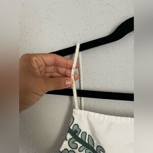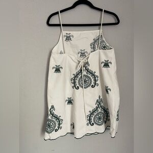 Zara Elegant White and Green Embroidered Women's Dress Size M