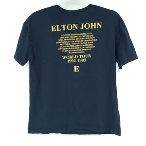 Zara Elton John The Tour World 1992-1993 Black T Shirt Women's Small Band Tee. Great used condition, however there is a small, very faint stain on the front bottom of the shirt (seen in last photo).