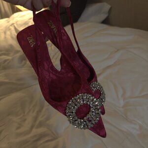 Zara Embellished Hot Pink Leopard Kitten Heels Size 9 EU 39