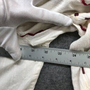 Zara Embroidered Blouse Womens XS Ivory Red Long Sleeve Boho Split Neck
