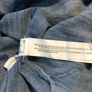 Chambray with intricate creamy white embroidery at neck and sleeves