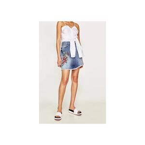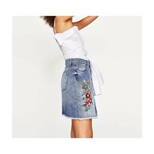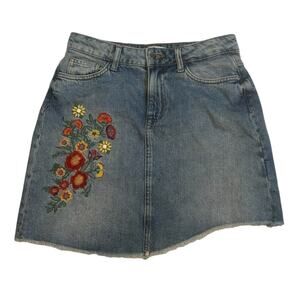 Zara Embroidered Embellished Denim Jean Skirt Small Floral Boho Cottage Festival