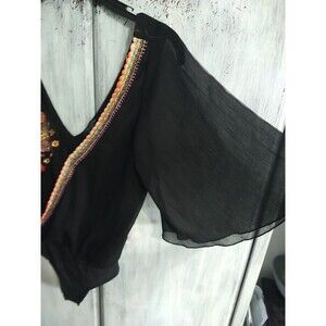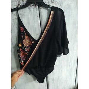 Zara Embroidered Embellished Medium Flared Sleeved V-neck Bodysuit Medium...