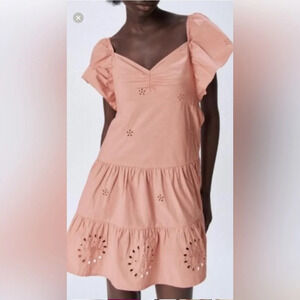 Zara Embroidered Flutter Sleeve Dress size XS in excellent condition