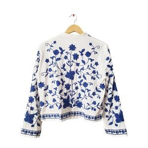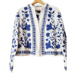 Zara Embroidered Linen/Cotton Blend Jacket White/Blue Size Large