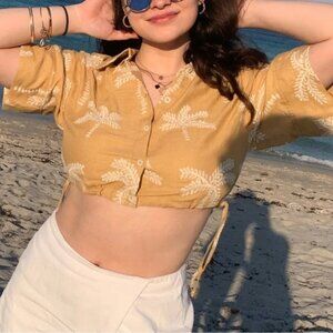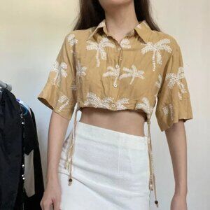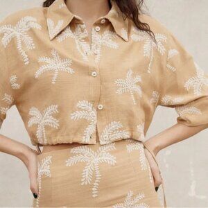 Zara Embroidered Palm Tree Linen Blend Crop Top M