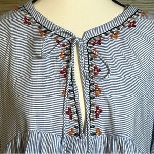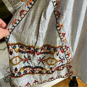 Zara Embroidered Puff Sleeves Tunic Mini Dress Top Womens Size S Floral Striped