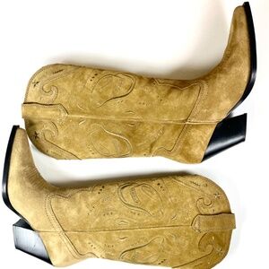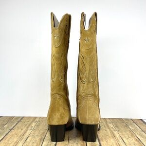 Zara Embroidered Taupe/Tan Suede 15.5” Pull-On Boots, Size 7.5