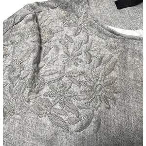 Elevate your wardrobe with this stylish Zara jacket that features an embroidered design on a wool outer shell. The swing jacket has a zip front, bell sleeves, and a collarless design that makes it perfect for any occasion, whether it's a casual day out or a business meeting. The gray color adds a touch of sophistication, and the 3/4 sleeves are perfect for all seasons.