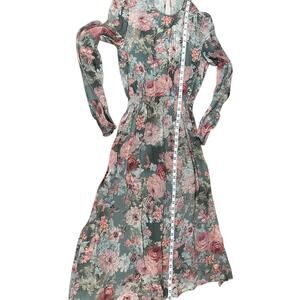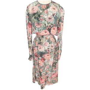 Zara Emerald Green Floral Chiffon Midi Dress Size Small Sheer Overlay with Slip