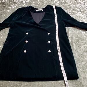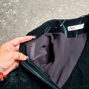 Zara Emerald Green Velvet Pearl Button Blazer
