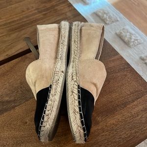 Zara Espadrilles size 40 (US 9) in tan suede with black suede cap toe. These are used, see photos but still have life left! Chanel look alike!