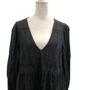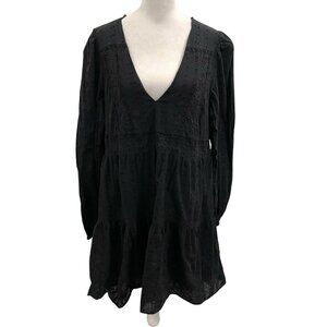 Zara Eyelet Embroidered Glam Punk Goth Long Sleeve Mini Dress Black size Large