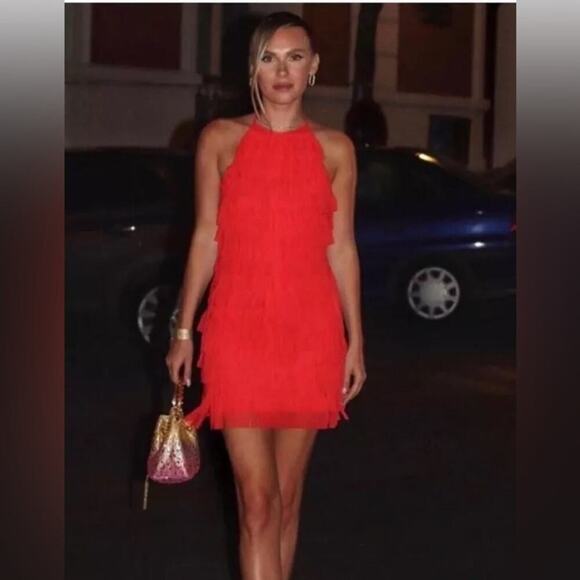 Zara FRINGED TULLE HALTER DRESS Size Small