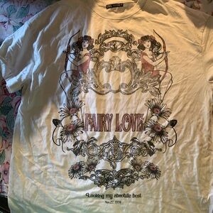 Cream t-shirt with a fairy love graphic and floral design. It has a design on the front and plain on the back. Bundle and save.