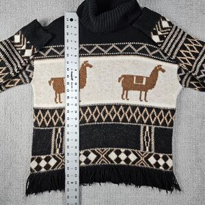 Zara Fancy Collection Girls Alpaca Print Turtleneck Knit Sweater Fringed