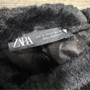 Zara Faux Fur Black Checkered Design Long Sleeve Crew Neck Loose Crop Top Small