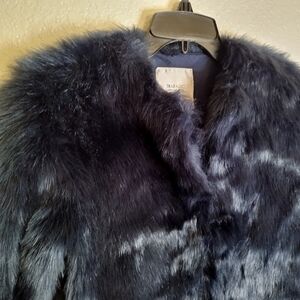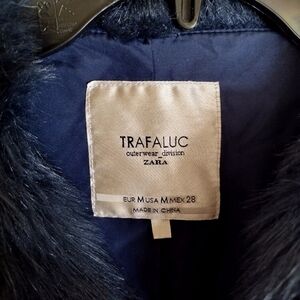 Zara Faux Fur Crop Navy Eye Hook Jacket Sz M