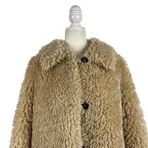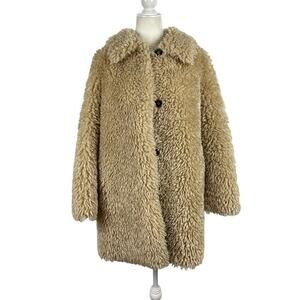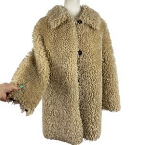 Zara Faux Fur Long Teddy Sherpa Jacket Coat Natural Beige Size Small 8490/241