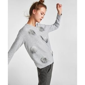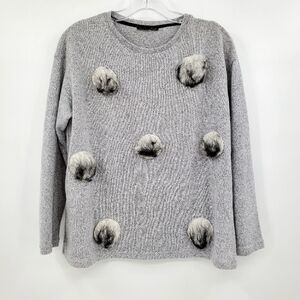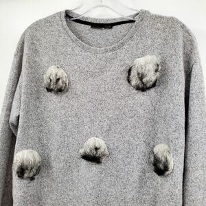 Zara Faux Fur Polka Dot Gray Sweater, Size M.