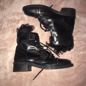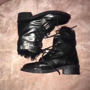 Zara Faux Fur Studded Combat Biker Boots Size 41